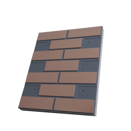Внешний слой - защитно-декоративный слой из высококачественного фибробетона. Это смесь цемента, а также армирующего волокна, песка и воды. За счет большого процента содержания цемента изделие получается максимально твердым. Панели полностью имитируют кладку из облицовочного кирпича, натурального камня, и другую фактуру на выбор, создавая благородный внешний вид вашего дома